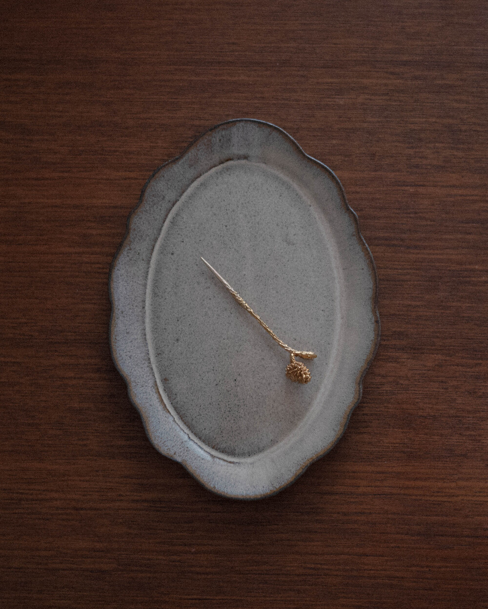 도자연 물결 접시 밤나무