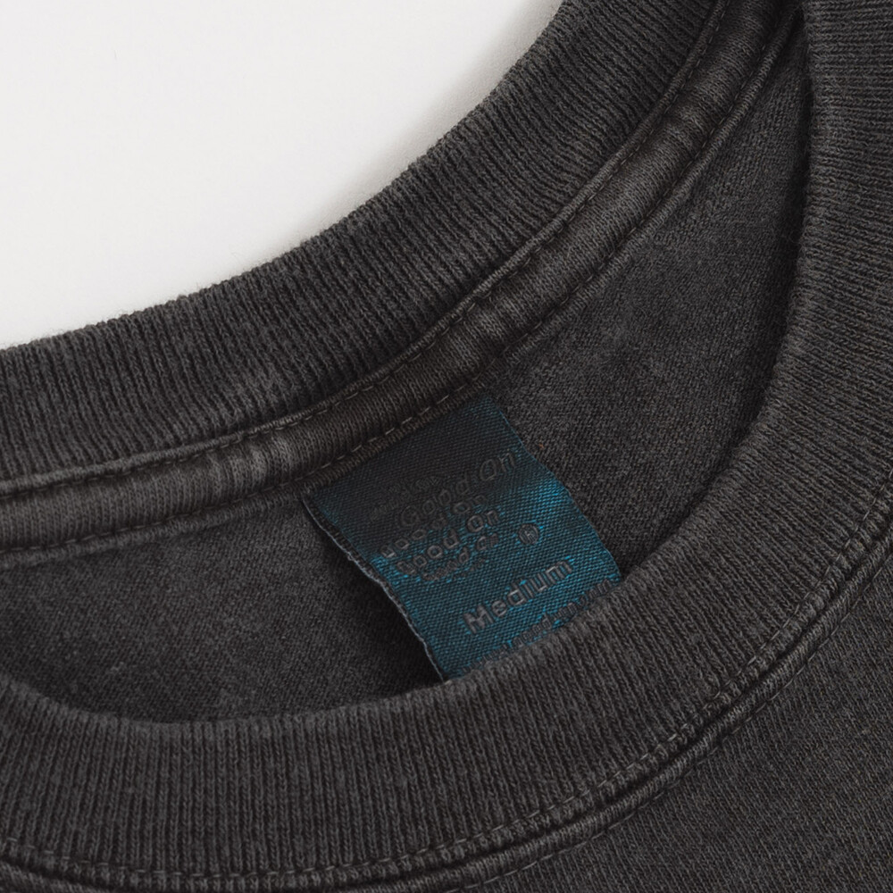 · 피그먼트 다잉은 봉재가 완료된 후에 진행되어 의류 라벨까지 의류와 같은 색상으로 염색된 것을 확인하실 수 있습니다.