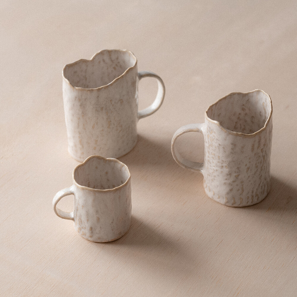 호이오 잔은 제작 과정에서 자연스럽게 생기는 랜덤한 끝 처리가 특징입니다. 같은 사이즈의 제품이라도 형태나 마감이 조금씩 다를 수 있습니다. 제품은 랜덤으로 발송되며, 원하시는 형태를 직접 선택하고 싶으신 경우에는 오프라인 스토어 방문을 권장드립니다. 아래의 사진은 M 사이즈 제품 예시입니다.
