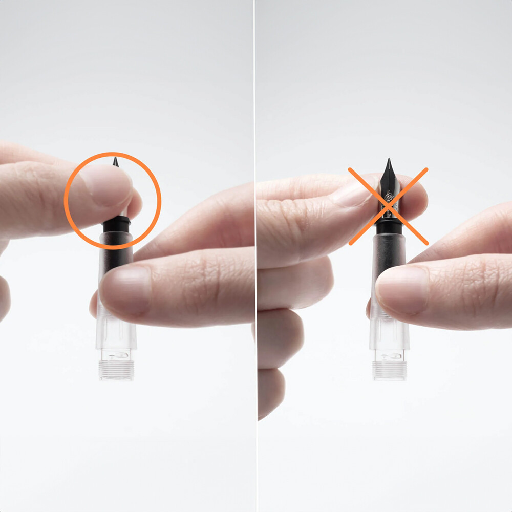 · 과도한 필압은 만년필 촉을 손상시킵니다.