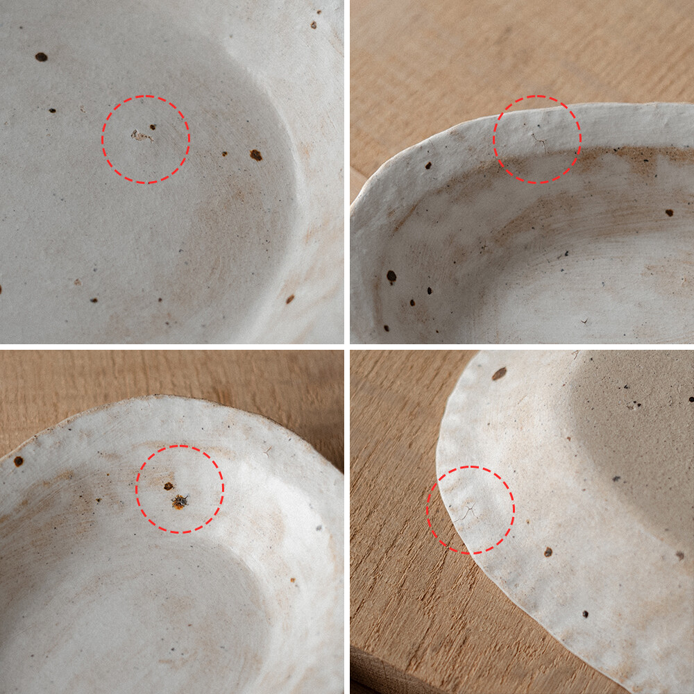 · 유약이 입혀지며 농도에 따라 유약이 흐른 자국, 가장자리 유약 말림이 발생할 수 있습니다.